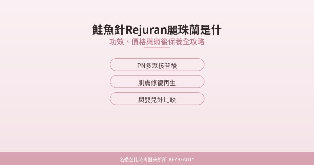 A:嬰兒針的主要成分是 PDRN(多聚脫氧核苷酸),分子量較小;鮭魚針(Rejuran)主成分為 PN(多聚核苷酸),分子量較大。兩者都萃取自鮭魚DNA,但作用機制與適應症略有差異,建議由醫師評估選擇。